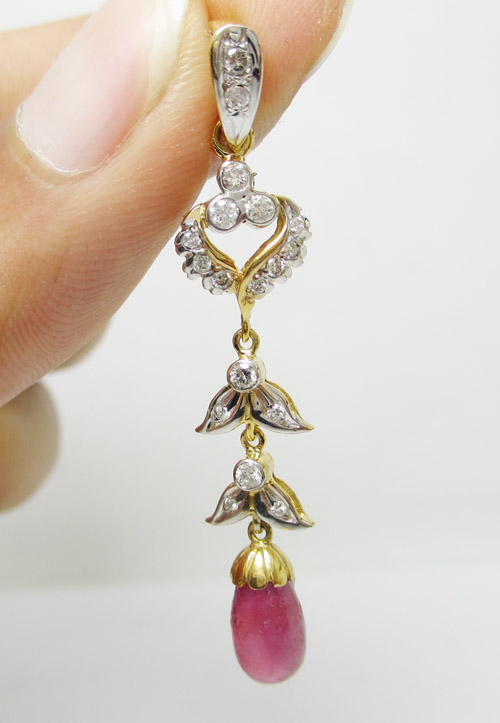 จี้ทับทิม ตุ้งติ้ง ฝังเพชร สวยมาก นน.3.42 g