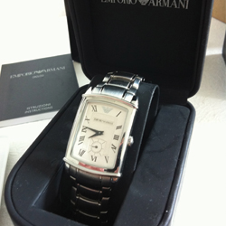 นาฬิกาสำหรับสุภาพบุรุษ แบรนด์ Emporio Armani รุ่น AR-0243 มือสอง สวยคลาสสิคสุดๆ ตัวเรือนและสายทำจาก Stainless Steel มีรอยขนแมวเล็กน้อย แต่สภาพโดยรวมสวยและคลาสสิคมากๆ เหมาะสำหรับใส่ทำงาน ถ้าถูกใจ ราคาต่อรองกันได้อีกนิดหน่อยครับ มาพร้อมกล่องและใบรับประกันอย่างดี