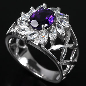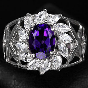 ชื่อสินค้า : แหวนเงินชุบทองคำขาวประดับพลอยแท้แอเมทิสต์
