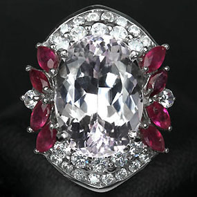 ลักษณะ : แหวนเงินชุบทองคำขาวประดับพลอยแท้คุณไซท์ เป็นพลอยแท้น้ำงาม สีชมพูอ่อน เจียรเป็นทรงรูปไข่ น้ำหนักพลอย 11.75 กะรัต ไฟดีมาก ขนาดของพลอย 16.4x11.9x8.7 มม.ล้อมด้วยทับทิม,ซัฟไฟร์และเพชรสวิสเกรดเอ ขนาด 2x2xมม.2 ชิ้น,1.7x1.7xมม.16 ชิ้น,2.5x2.5xมม.12 ชิ้นและ 6x3xมม.8 ชิ้น แบบหรูหรา สง่างามทันสมัยใส่ได้ทุกโอกาส งานฝีมือช่างจิวเวลลี่จันทบุรี ตัวเรือนเป็นเงินน้ำหนัก 9.97 กรัมขนาดแหวนเบอร์ 55 หรือ size 7.25 หน้าตัวเรือน 25x21 มม.**ลด-เพิ่มขนาดไม่คิดค่าบริการ**(( ฟรีกล่องกำมะหยี่สุดหรู ))