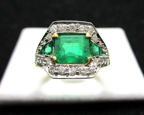 แหวนมรกต โคลัมเบีย ฝังเพชร นน.4.45 g