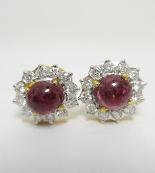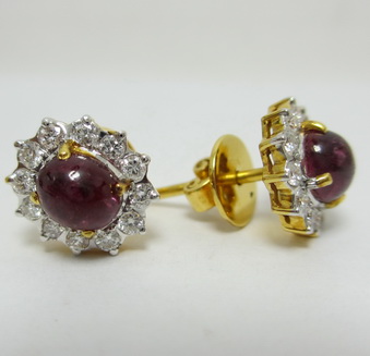 ต่างหู ทับทิมพม่า เนื้อแก้ว ล้อมเพชร 0.62 กะรัต นน.4.50 g