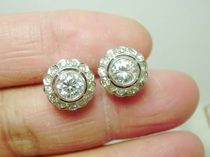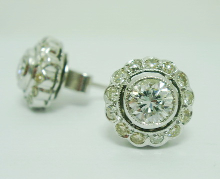 ต่างหูเพชรเดี่ยว เพชร 2 เม็ด นน. 1.15 ct ล้อมเพชร เพชร ขาว สวย
