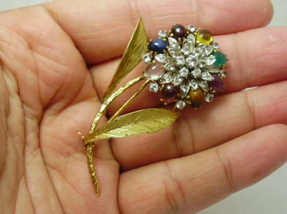เข็มกลัดดอกไม้ นพเก้า งานทอง K