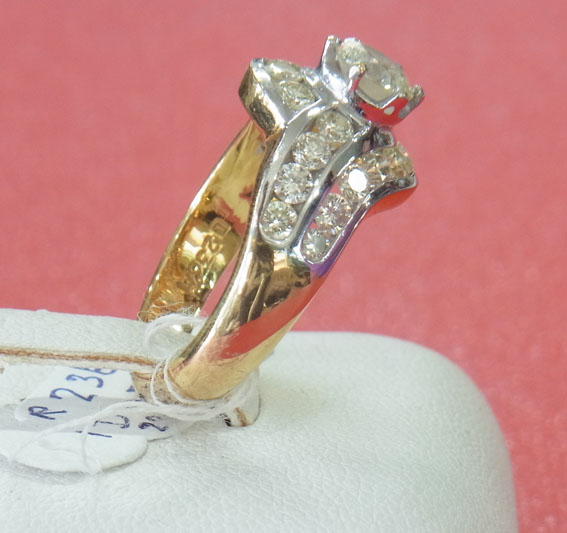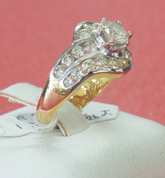 R23671 ขายแหวนเพชรทองคำแท้ 90% น้ำหนัก 8.16 กรัม เพชรแท้เม็ดกลาง 1 เม็ด น้ำหนัก 0.70 ct เพชรล้อม น้ำหนักรวม 1.26 ct รวม 22 เม็ด ราคา 88,000 บาท
