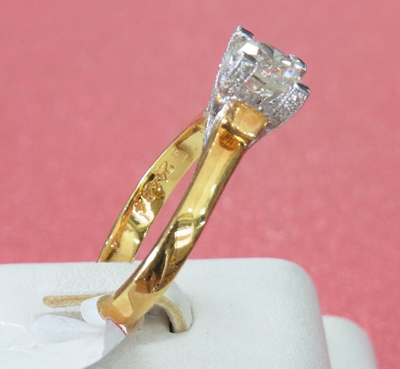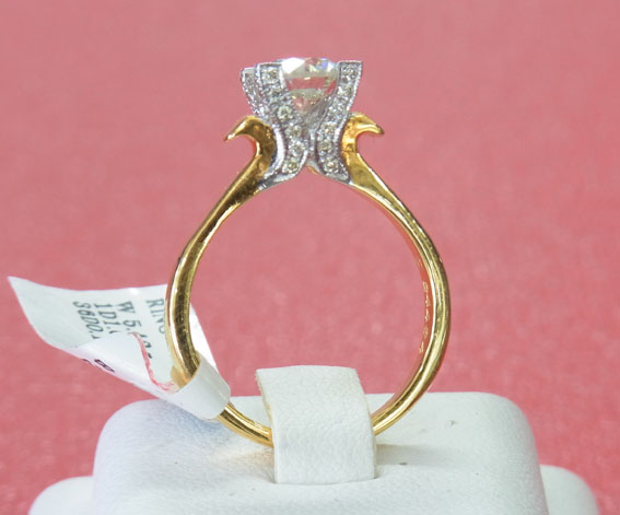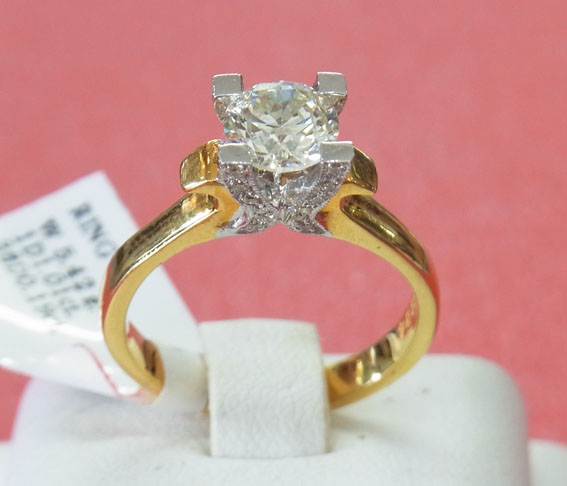 R24484 ขายแหวนเพชรทองคำแท้ 90% น้ำหนัก 5042 กรัม เพ็ชรแท้ 1 เม็ด น้ำหนัก 1.02 ct เพชรล้อม น้ำหนักรวม 0.19 ct รวม 36 เม็ด ราคา 97,000 บาท