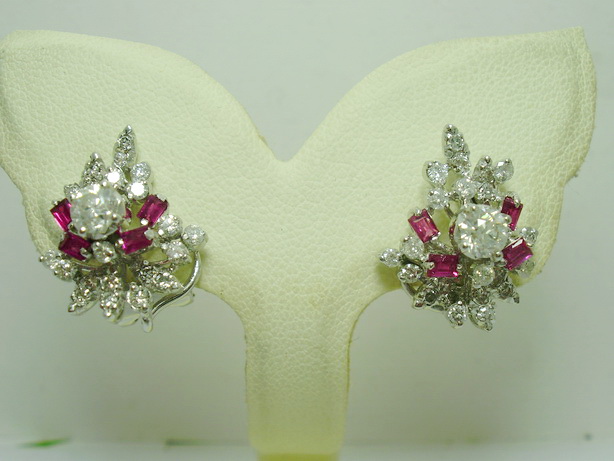 ต่างหูเพชร ทับทิม กระจุก ทองขาวโบราณ ตัวเรือนน้ำหนักโดยประมาณ 2.52 กรัม (ชั่งทั้งชิ้นงาน) รวมกว่า 1.22 กะรัต