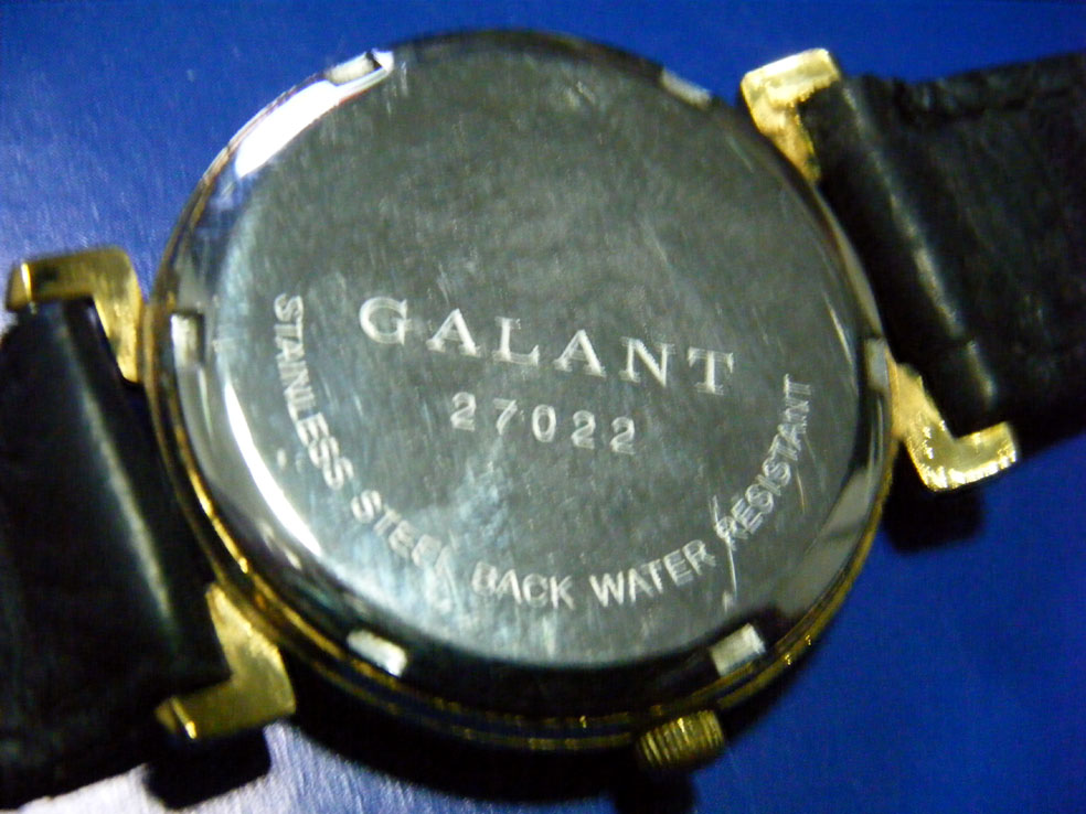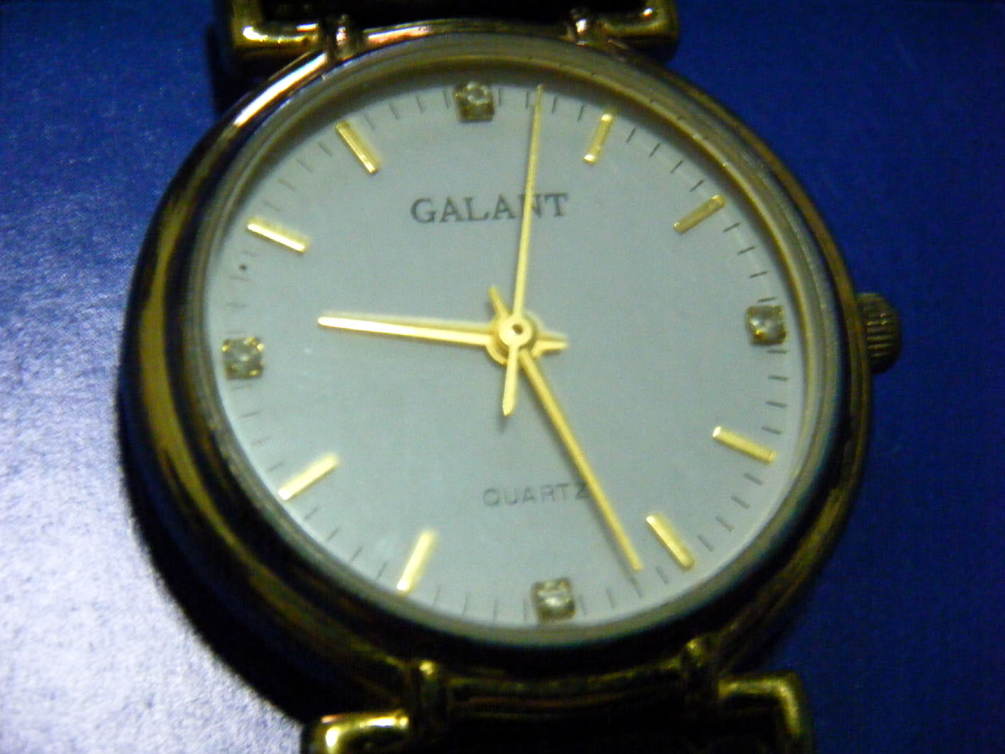 นาฬิกาเก่า ยี่ห้อ กาแลนท์ สายสีดำ สภาพยังดี ระบบควอตซ์ เดินปกติ ตัวเรือนมีรอยเล็กน้อย ขนาดประมาณ 33 mm