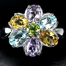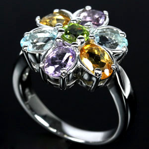 แหวนพลอยแท้ทรงดอกไม้หลากสี 3.90 กะรัต(3551)