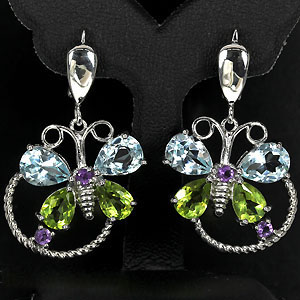 ต่างหูผีเสื้อพลอยแท้โทปาส,เพอริโดและแอเมทิสต์ 5.15 กะรัต(3529)