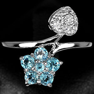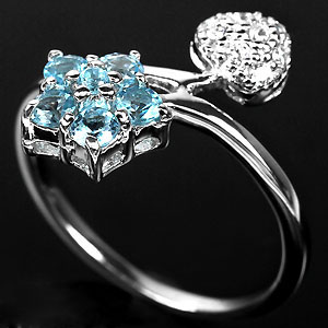 แหวนพลอยแท้โทปาสและซัฟไฟร์หัวใจและดอกไม้(3528)
