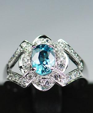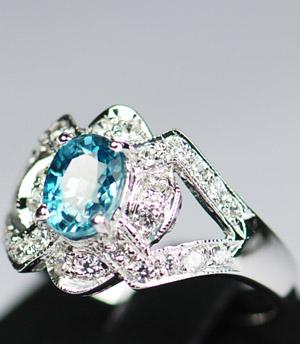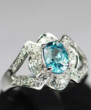 แหวนพลอยเพทาย 1.60 กะรัตสีฟ้าสวยแบบหรู(3513)