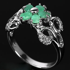 ลักษณะ : แหวนเงินชุบทองคำขาวประดับพลอยแท้มรกต เป็นพลอยแท้น้ำงาม สีเขียว เจียรเป็นทรงรูปไข่ น้ำหนักพลอย 1.45 กะรัต ไฟดี สีสวย น้ำงาม ขนาดของพลอย 3.5x3xมม. 5 ชิ้น พลอยแท้เนื้อแข็งทรงกลมขนาด 1.5x1.5xมม. 8 ชิ้น แบบสวยน่ารักทันสมัยใส่ได้ทุกโอกาส งานฝีมือช่างจิวเวลลี่จันทบุรี ตัวเรือนเป็นเงินน้ำหนัก4.09 กรัมขนาดแหวนเบอร์ 54 หรือ size 7 หน้าตัวเรือน 20x10 มม.**ลด-เพิ่มขนาด