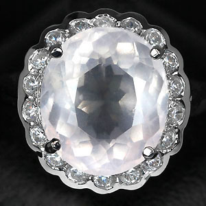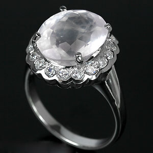 ลักษณะ : แหวนเงินชุบทองคำขาวประดับพลอยแท้โรสควอร์ตเป็นพลอยแท้น้ำงาม เจียรเป็นทรงรูปไข่ น้ำหนักพลอย 5.50 กะรัตขนาดพลอย 12.4x10.7x7.4 มม.ล้อมด้วยพลอยเนื้อแข็งขนาด 1.7x1.7xมม.18 ชิ้น