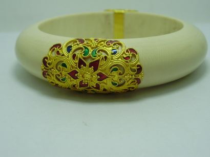 กำไลงาช้าง ฉลุลายทองลงยา 99.99 ท้องปลิง งานสวย