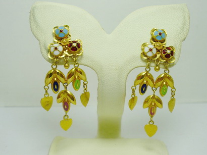 ต่างหู ทองลงยา งานเก่า 50 ปี นน. 4.73 g