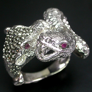 ชื่อสินค้า : แหวนเงินชุบทองคำขาวเสือสู้กับงู
