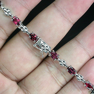 ชื่อสินค้า : สร้อยข้อมือเงินประดับพลอยโกเมนโรโดไรท์