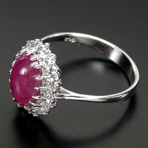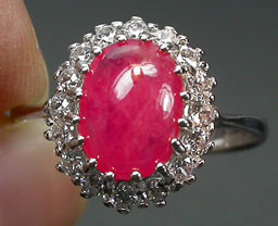 แหวนพลอยแท้ทับทิมสีแดงอมชมพูล้อมด้วยเพชรสวิส(3381)