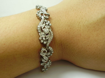 สร้อยข้อมือเพชร งาน ทองk 2สี งานเก่า เพชร เม็ดกลาง 0.20 กะรัต ล้อมรอบ 74 เม็ด ประมาณ 1.10 กะรัต ขาว สวย ไฟดี