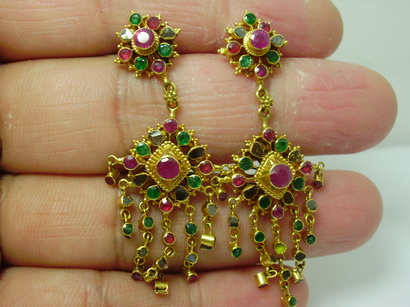ต่างหู ทับทิม มรกต เพชรซีก ตุ้งติ้ง ทอง 90%งานเก่า ooo