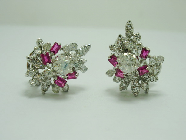 ต่างหู 3 สี ทับทิม มรกต เพชรซีก ตุ้งติ้ง นน. 6.67 g