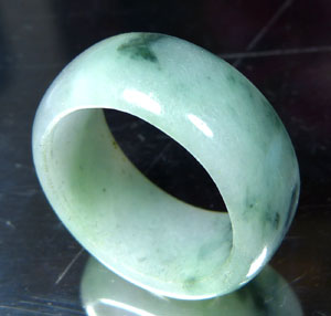 ลักษณะ : แหวนหยกสีเขียวปนขาว น้ำหนัก 31.40 กะรัต เป็นหยกพม่าแท้