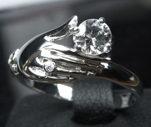ชื่อสินค้า : แหวนเงินชุบทองคำขาวประดับพลอยเพทาย
