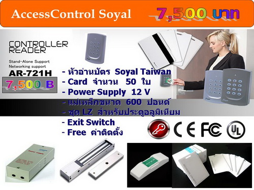 - เครื่องอ่านบัตร Soyal รุ่น AR-721HV3 จากไต้หวัน 1 ชุด