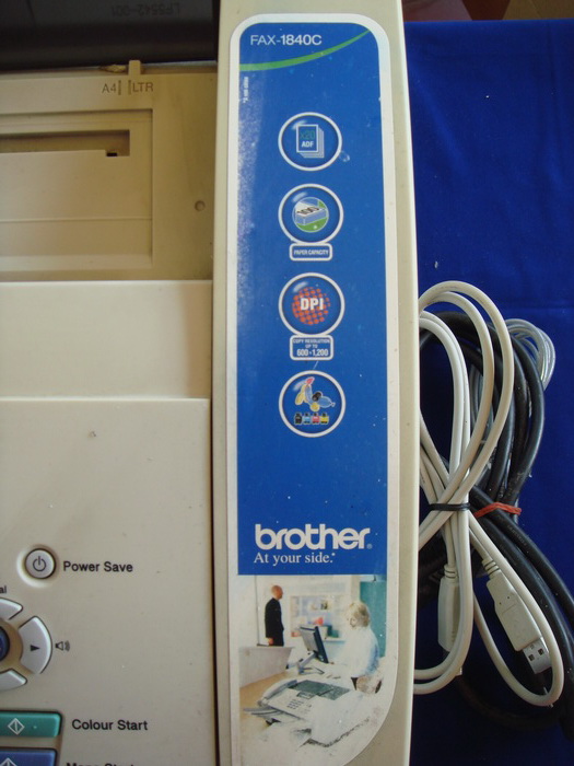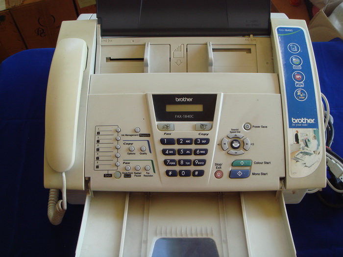 เครื่องแฟกซ์ BROTHER 1840c ส่งออกได้รับได้ แต่เวลารับหมึกอาจจะไม่เสมอหรือบางสีอาจะไม่ออกครบเพราะไม่ค่อยได้ใช้ เป็นprinterด้วยในตัว ต้องไปทำการล้างหัวพิมพ์ก่อน เครื่องใหญ่ แข็งแรง ทนทาน สามารถใช้เป็นเครื่องส่งเอกสาร โทรออกได้