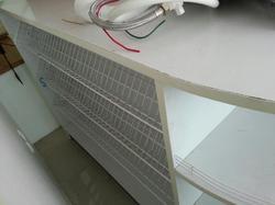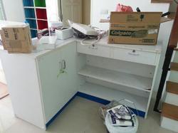 เคาเตอร์สีขาว ด้านหน้าเป็นชั้นวางของ เหมาะกับหลายธุรกิจ ราคาไม่แพงค่ะ
