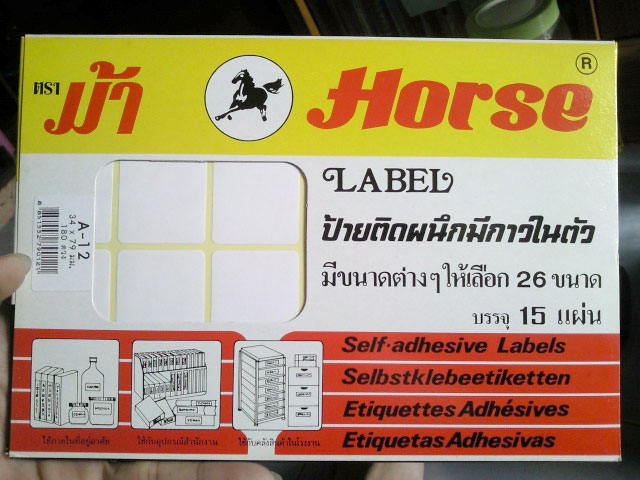 ขายป้ายสติ๊กเกอร์ ตราม้า A12 เนื้อกระดาษขาว กาวติดแน่น มีกาวในตัว