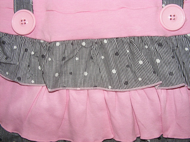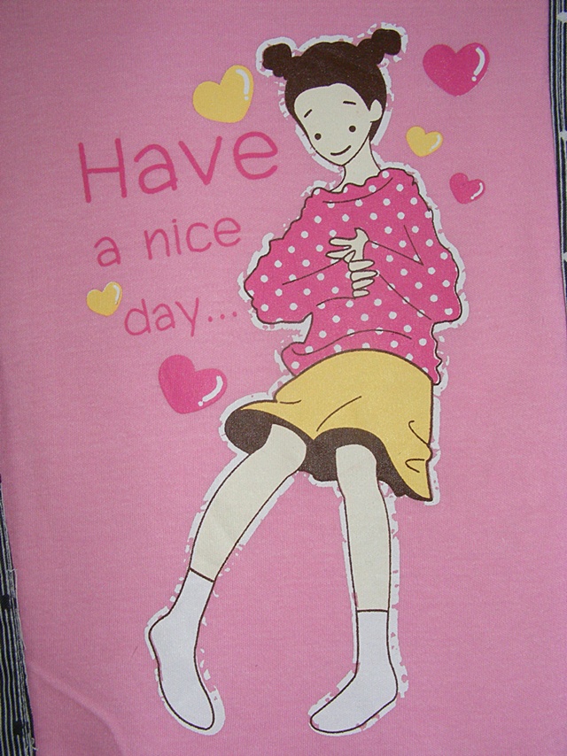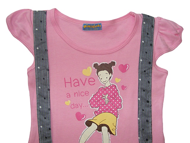 เสื้อผ้าเด็กส่งออก ชุดเดรส Minigirls สีชมพูมีระบายสีขาวดำดูดี เพ้นท์รูปเด็กผู้หญิงน่ารักมากๆ ใส่สบาย ผ้า cotton 100% ลดราคาพิเศษ