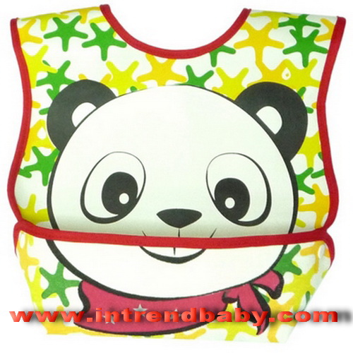 ผ้ากันเปื้อนแบบมีถาดพลาสติก ผืนใหญ่ สามารถรองรับเศษอาหารได้ หรือใช้เป็นถาดใส่ขนมเพื่อใช้หยิบทานได้ ถาดสามารถถอดเข้าออกได้ง่ายเพื่อล้างทำความสะอาด หรือใช้เป็นผ้ากันเปื้อนอย่างเดียวก็ได้ ผ้ากันเปื้อนทำจากพลาสติกซึ่งเช็ดทำความสะอาดสะดวก ด้านหลังเป็นผ้าเพื่อความนุ่มสบาย