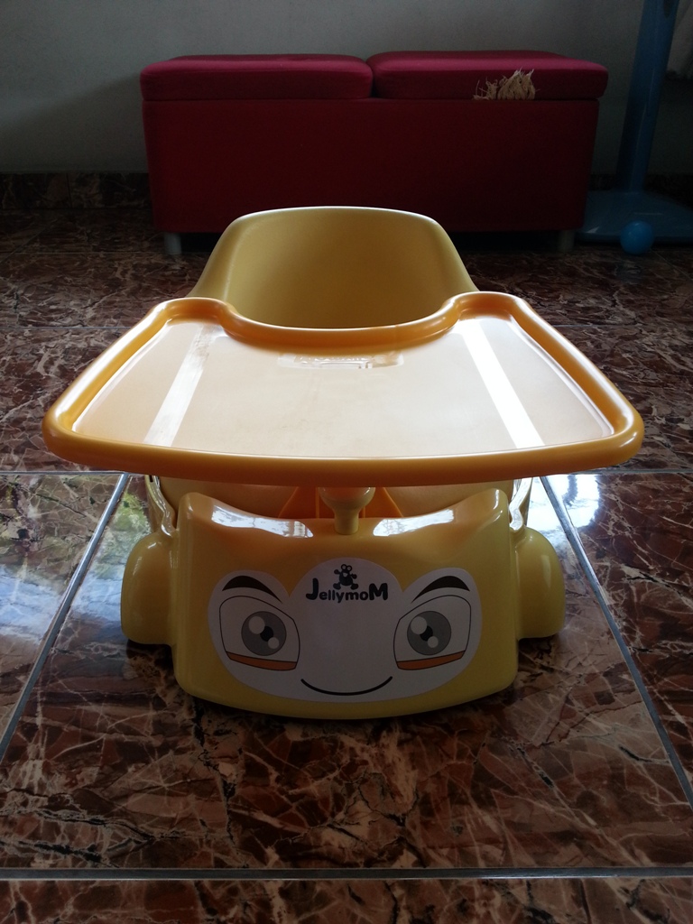 ขายเก้าอี้หัดนั่ง Jelly mum พร้อมถาด รถวางเก้าอี้ ผ้าคลุมเก้าอี้ สภาพ 95 % ราคา1,500 บาท