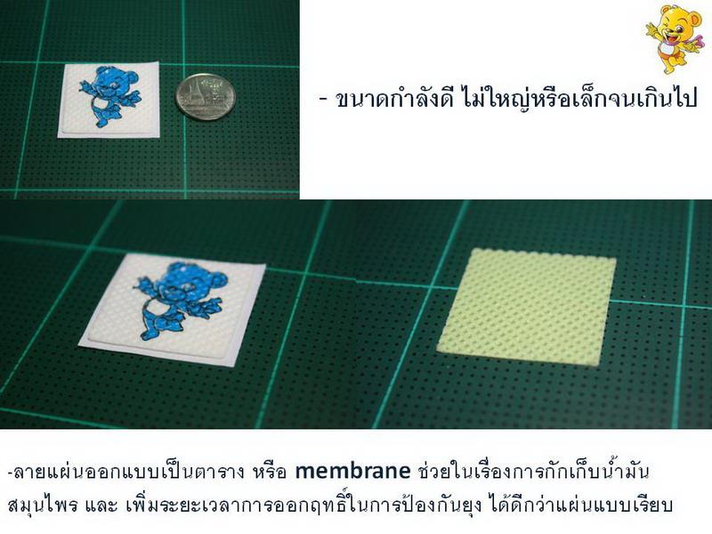 - รัศมีการออกฤทธิ์กันยุงจะมากกว่าแบบแผ่นแปะ 1 เท่า คือ 100 เซนติเมตร หรือ 1 เมตรโดยประมาณครับ