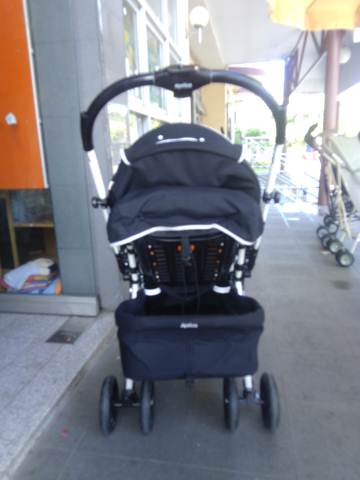 รถเข็นเด็ก ยี่ห้อ Aprica สีทรีโทน ดำ-เทา-ขาว สภาพสวย ดูทันสมัย แถม เป้อุ้มเด็ก Baby Sling 1 ตัว มูลค่า 350 บาท ฟรี !