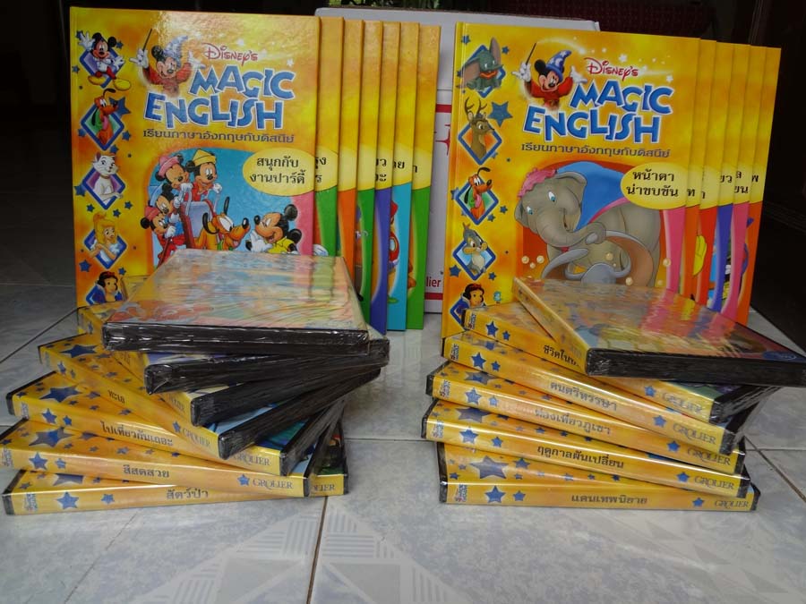 Disney Magic English ของ บจก.โกรเลียร์ สื่อการสอนภาษาอังกฤษสำหรับเด็กเล็ก (ต้นฉบับ) มี 2 ชุด ชุดละ 13 แผ่น ต่อ 1 ลัง รวม 26 แผ่น (ตามภาพค่ะ) มี แผ่น DVD พร้อมหนังสือคู่ทุกแผ่น (ยังไม่ใช้ทั้ง 2 ชุดแกะแต่ลังค่ะ) แต่ขายในราคามือสองค่ะ ซื้อมาราคา 24,050 บาท แต่ขายในราคา 19,000 บาท ซื้อแยกชุดได้ค่ะราคาพิเศษ ชุด 1 ขาย 8,500 บาท เพราะมีแผ่นซ้ำ 1 เรื่องแต่หนังสือไม่ซ้ำค่ะ ชุด 2 ขาย 9,500 บาท พอดีซื้อแบบไม่เช็คสินค้าค่ะ