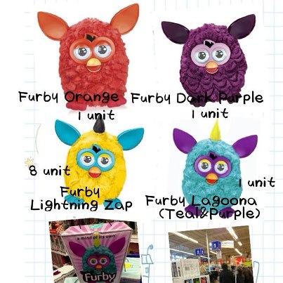 Furby Lightning Zap 8units / Dark Purple 1 unit / Orange 1 unit / Lagoona ( Teal&Purple) 1 unit