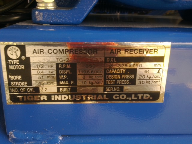 ขายปั๊มลม TIGER 2สูบ(ของเเท้ใหม่ๆ) ขนาด 1/2เเรง ถัง64 ลิตรพร้อมใช้งานได้ดีมากครับ เป็นของใหม่นะครับ