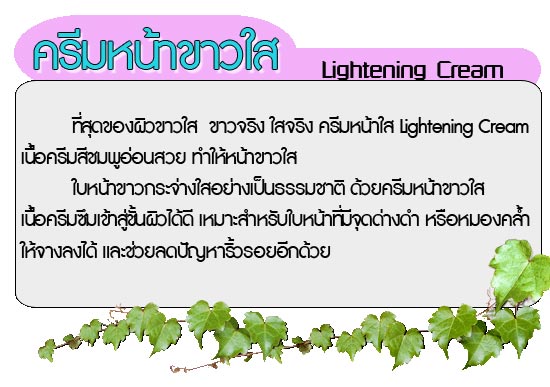 ครีมหน้าขาวใส Lightening Cream ลดริ้วรอย จุดด่างดำ ให้สีผิวเรียบเนียน จำหน่าย ปลีก-ส่ง รับสมัครตัวแทนจำหน่าย