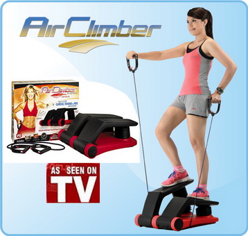 Air climber เป็นเครื่องออกกำลังกายแบบเหยียบขึ้นลงรุ่นใหม่ เป็นเครื่องออกกำลังกายที่เลียนแบบการก้าวขึ้นบันไดที่จะช่วยให้คุณออกกำลังกายได้อย่างสนุกสนาน ช่วยให้คุณเผาผลาญไขมัน และแคลอรี่ได้อย่างง่ายดาย ออกกำลังกายได้ทั้งตัว โดยเฉพาะช่วงเอว สะโพก ต้นขา น่อง air climberใช้ระบบถุงลม( air stepper)ขณะผู้เล่นก้าวเหยียบแท่นขึ้นและลง จึงช่วยลดแรงกระแทกมีความปลอดภัยต่อข้อเข่า เครื่องออกกำลังกายair climber สามารถปรับแรงหนืด ปรับแรงต้าน และความสูงได้ตามต้องการ เครื่องออกกำลังกาย air climber มีหน้าจอ LCD สามารถเช็คได้ เวลา, จำนวนครั้งที่เล่น, จำนวนแคลอรี่, โดยเฉลี่ยการก้าว/นาที พร้อมอุปกรณ์เสริม Body Cord ที่สามารถปรับความยาวได้ตามส่วนสูง จะช่วยให้คุณบริหารร่างกายช่วงแขน และร่างกายส่วนบนด้วย สาธิตการใช้งาน