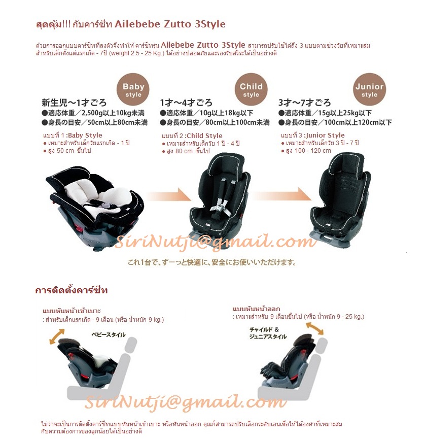 สุดคุ้ม!!! กับคาร์ซีท Ailebebe Zutto 3Style
