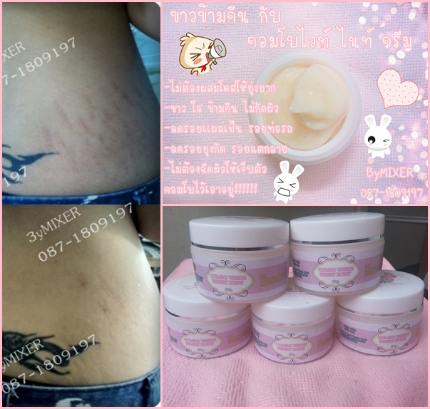 | คำค้น: | คอมโบไวท์ | ลดรอยแตกลาย | ขาวข้ามคืน | ลดรอยด่าดำ | ลดรอยแผลเป็น | ลดรอยแดง | | ||||