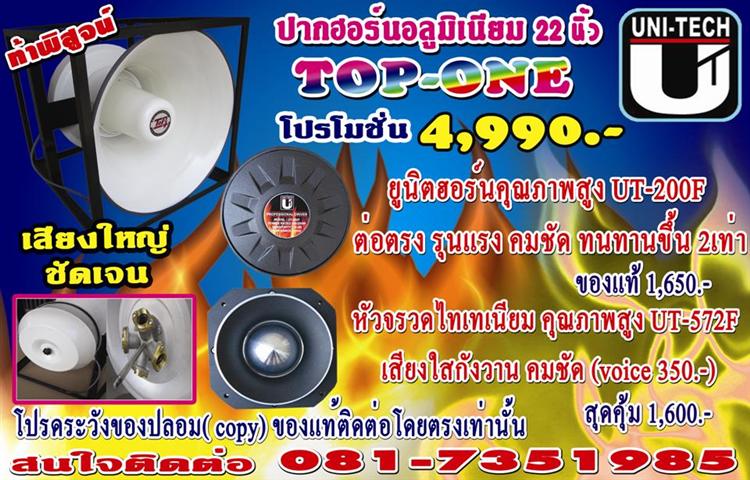 ขายปากฮอร์นกระโถนTop-one ปากใหญ่22นิ้ว 4,990 บาทพร้อมหัวจรวดและยูนิตUNI-TECH 200Fตัวแรง ของแท้