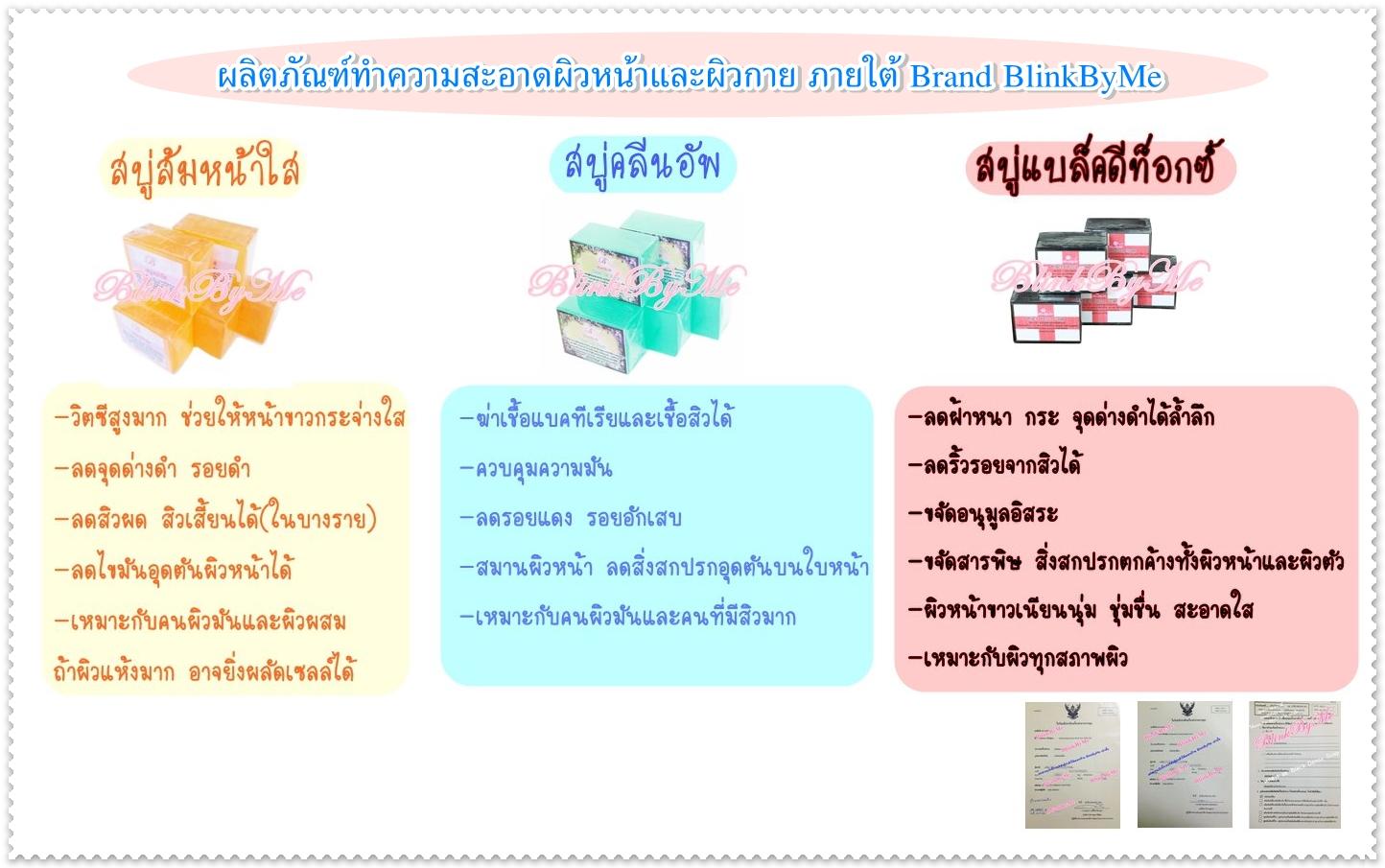 1. Blink Soap : สบู่ฟื้นฟูบำรุงเซลล์ผิว ช่วยลดความมันบนใบหน้า ลดการเกิดสิว ฝ้า กระ ลดรอยด่างดำและแผลเป็นที่เกิดจากสิว เผยผิวหน้านวลเนียน สดใสเปล่งปลั่ง ทำให้หน้าเด้ง กระชับ คงความอ่อนวัย มีชีวิตชีวา