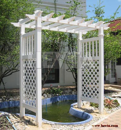 ซุ้มไม้เลื้อย uPVC จาก HEVTA ถูกผลิตขึ้นจากวัสดุ uPVC เพื่อทดแทนการใช้งานซุ้มไม้เลื้อยแบบไม้ ซึ่งไม่ทนต่อสภาพอากาศและต้องการๆบำรุงรักษาที่สูงมากในแต่ละปี ซุ้มไม้เลื้อย uPVC มีโครงสร้างภายในเป็นโลหะปลอดสนิมห่อหุ้มด้วยวัสดุ uPVC ซึ่งทนทานต่อทุกสภาพภูมิอากาศ ไม่มีการผุกรอบหรือเปลี่ยนสีตลอดอายุการใช้งาน สามารถตัดประกอบได้ตามแบบและขนาดตามต้องการ เหมาะกับการนำไปประดับสวน ประดับประดาด้วยต้นไม้ ซุ้มไม้เลื้อย uPVC จาก HEVTA มาพร้อมกับการรับประกันคุณภาพ 10 ปีเต็มพร้อมบริการติดตั้งและออกแบบทั่วประเทศ