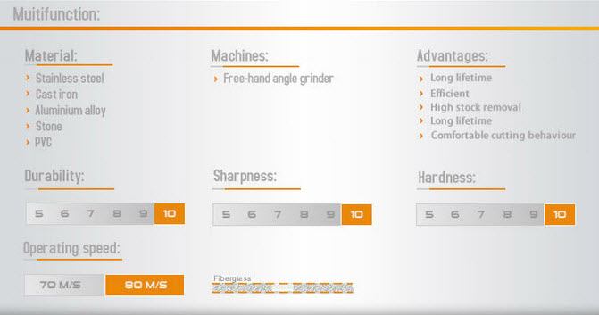 - ใบตัด ฟาสท์ : ตัดได้เร็วกว่าใบตัดทั่วไปถึง 2 เท่า ด้วยความเร็ว 80M/S