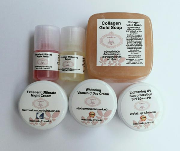 สบู่ทองคำที่เป็นหนึ่งเรื่องทำความสะอาดผิวหน้าได้อย่างสะอาดล้ำลึกกว่าที่เคย ช่วยล้างทำความสะอาดผิวหน้าที่มีปัญหาหมองคล้ำโดยเฉพาะ เพื่อเร่งให้หน้าสว่างใสเมื่อใช้อย่างต่อเนื่องและวิตามีนซีสดผสมทองคำเป็นวิตามินซีรูปแบบใหม่ซึ่งเกาะอยู่กับกลูโคส ใช้ได้แม้ผิวบอบบางแพ้ง่าย ช่วยลดรอยสิว ผิวหน้าเปล่งปลั่ง สดใส สุขภาพดี