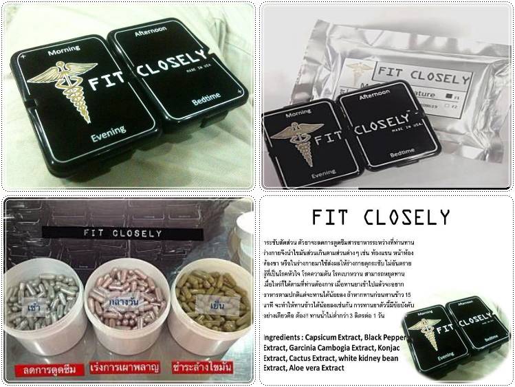 " FIT CLOSELY เป็นยากระชับสัดส่วนค่ะไม่ใช่ยาลดน้ำหนักนะคะ > > เพราะไม่มีส่วนประกอบของ "ไซบูตามีน" ค่ะเป็นสมุนไพรรสร้อนจึงสามารถเผาพลาญส่งผลให้น้ำหนักลดลงและทำให้สัดส่วนกระชับขึ้นได้ มาฟิตกันเถอะ เหตุฉะไหนถึงต้องกิน 3 เวลามื้อเช้า - ลดการดูดซึม